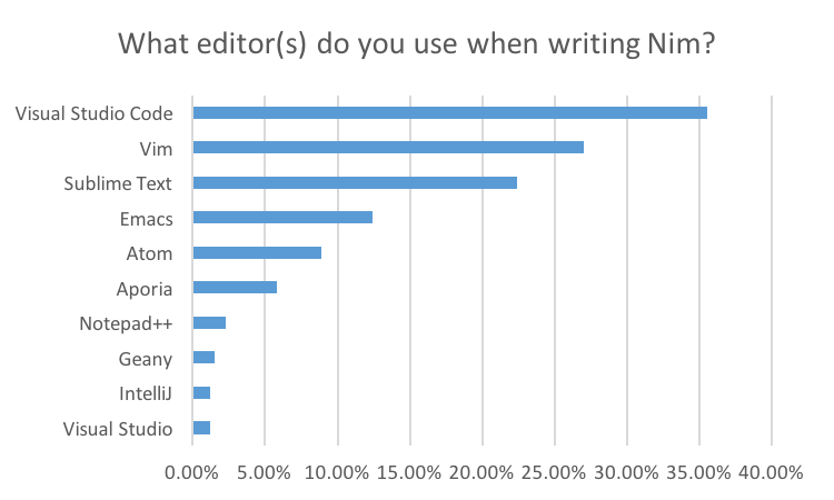 We have recently closed the 2017 Nim Community Survey. I am happy to say that we have received exactly 603 responses, huge thanks go to the people that took the time to respond. We’re incredibly thankful for this very valuable feedback.