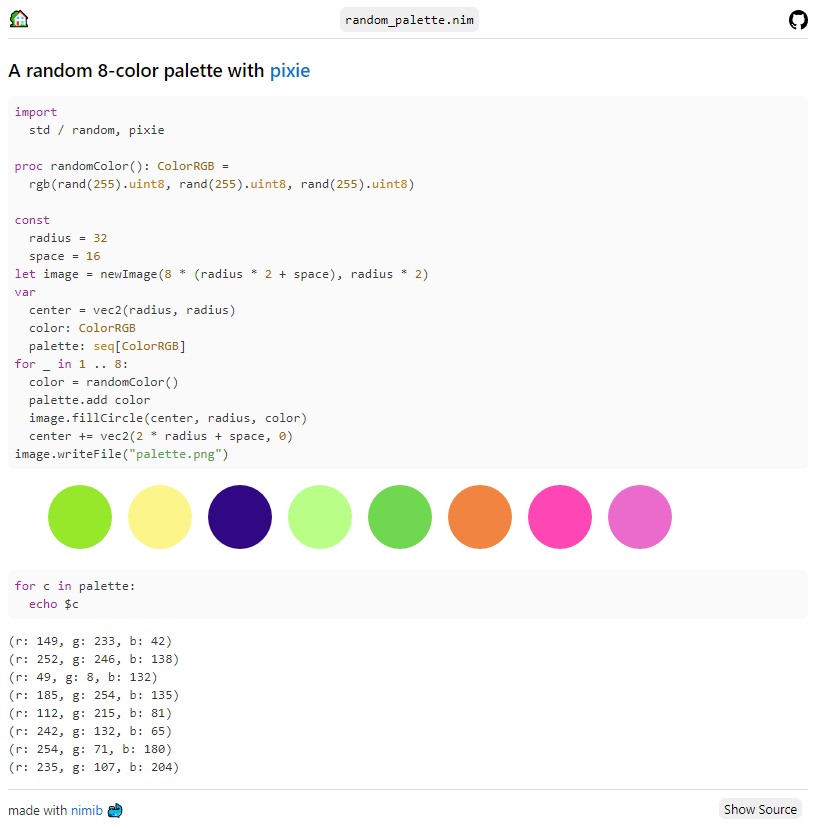 nbText: "### A random 8-color palette with [pixie](https://github.com/treeform/pixie)"